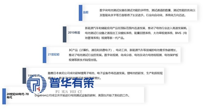电池测试设备行业:新能源浪潮下的核心支撑与国产崛起 随着全球能源结构向清洁化、低碳化转型,电池作为关键储能载体,在新能源汽车、储能系统、消费电子等领域的应用日益广泛。电池测试设备作为保障电池性能、安全与寿命的核心工具,也迎来了高速发展的黄金期。 1、全球电池测试设备行业的发展特点 从20世纪60年代开始,国外公司就开始了电池测试设备的研发工作。德国的Digatron公司是其中之一,他们在电池测试设备领域取得了重要进展。随着时间的推移,电池技术的发展和应用不断扩大,促使了电池测试技术的需求日