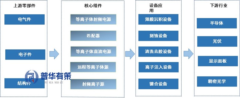技术壁垒与国产机遇:中国等离子体射频电源系统百亿市场洞察 1、等离子体射频电源系统行业产业链结构分析 等离子体射频电源系统作为薄膜沉积、刻蚀、离子注入、清洗去胶、键合等设备实现核心工艺功能的关键零部件,可广泛应用于半导体、光伏、显示面板、精密光学、等离子体清洗等领域,是推动工艺和技术进步的重要载体。 等离子体射频电源系统行业产业链结构图 图片1.jpg [/public/files/611419691468ae] 资料来源:普华有策 2、行业发展概况 (1)等离子体射频电源系统是半