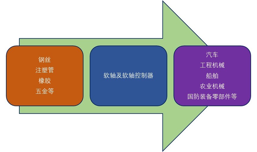 软轴及软轴控制器属于车辆的操控系统,通过软轴控制器和软轴指挥车辆执行车辆基本动作以及专用车辆的功能性动作,直接控制车辆的行走、变速、刹车、熄火、以及专用车辆功能部件的举升、下降、前进、后退等,是影响操控舒适度、工作效率和安全可靠性的关键部件,在汽车、工程机械、农业机械、船舶、国防装备零部件领域占有十分重要的地位。