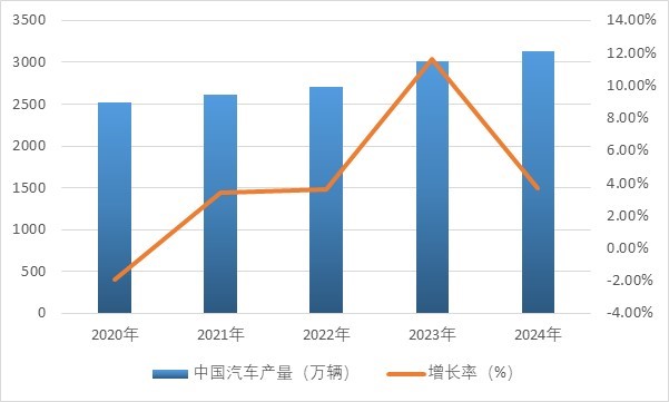 随着我国国民经济的持续发展,汽车产业在21世纪迎来了黄金机遇期。2004-2017年是我国汽车工业的腾飞期,产销量年均增长超过14%。然而,2018-2020年,由于全球经济放缓、国际贸易争端等因素,行业面临较大不确定性,并一度出现下滑。自2021年起,政府出台促进消费政策,车企推出降价和促销活动,市场信心回升,2021年汽车产销量回升至2600万台以上。2024年,汽车产销量稳定增长,分别达3,128.20万台和3,143.60万台,同