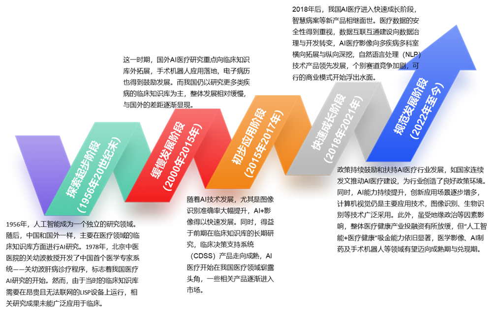 我国AI医疗行业起步较晚,20世纪80年代开始相关研究。随着阿里、腾讯、