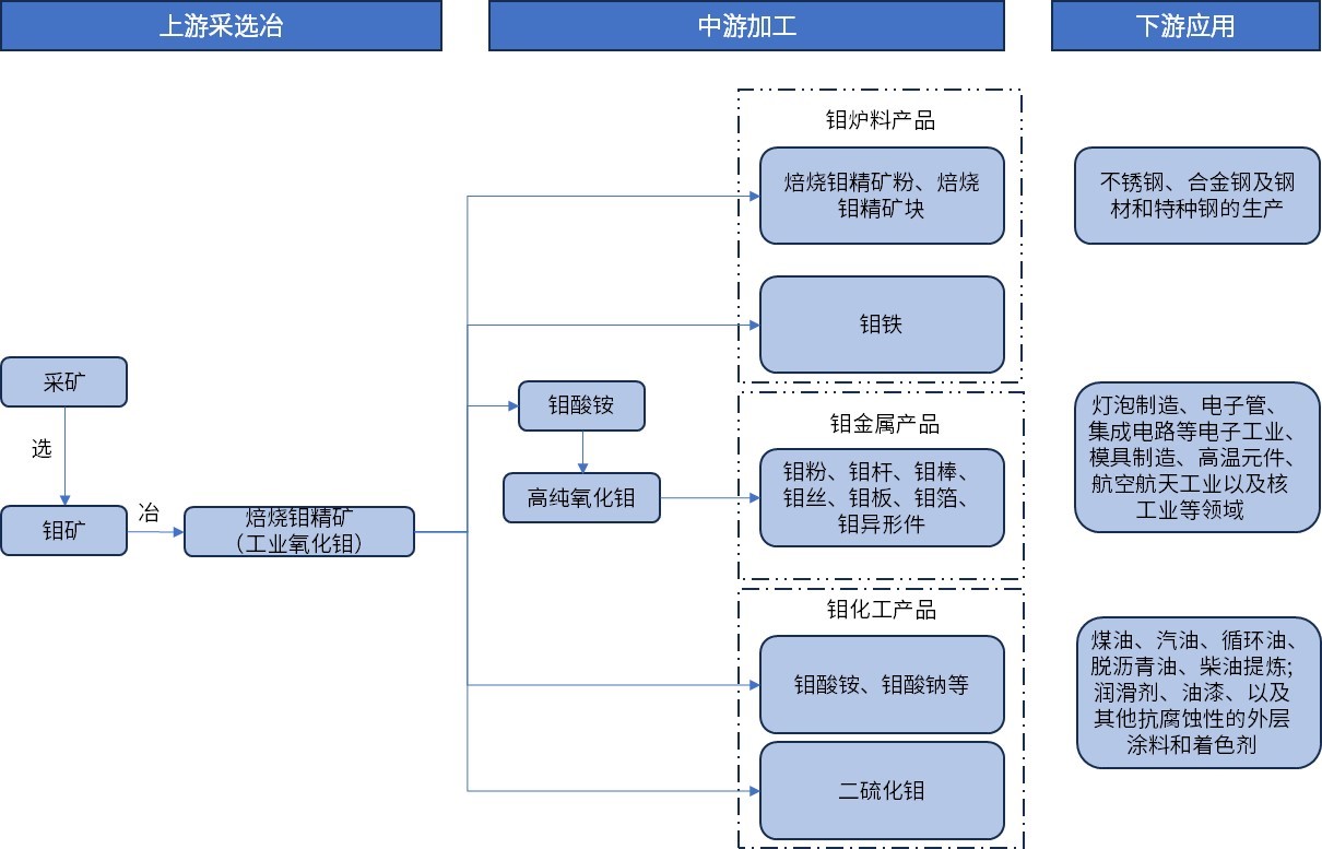 钼是一种具有银白色金属光泽的塑性金属,其突出特性包括优异的机械强度、极高的熔点和硬度、良好的导热与导电性能、卓越的耐磨性、低热膨胀系数以及优异的抗腐蚀性能,在工业应用中展现出显著的不可替代性。作为关键的功能性添加剂,钼广泛应用于低合金钢、合