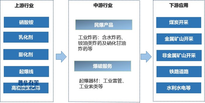 民爆行业基本可分为民爆产品和爆破服务。民爆产品包括工业炸药、起爆器材;爆破服务是指由具备资质的专业爆破作业单位为民爆物品使用单位提供购买、运输、储存、爆破、清退等一条龙有偿爆破作业服务。