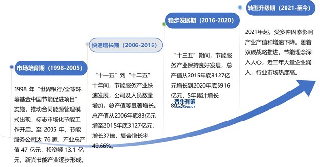 节能服务产业是指为项目或用能单位在节能减排方面提供节能服务和支持的产业,根据客户对能源的需求,借助于供给、分配及利用环节,提供尽可能有利于环境的,集前期节能诊断、节能改造设计、中期融资、工程实施运行和后期节能跟踪服务为一体的产业,并从客户进行节能改造后获得的节能效益中收回投资和取得利润。节能服务的领域广泛分布于工业、建筑、交通、居民、商业、政府及其他公共机构等。