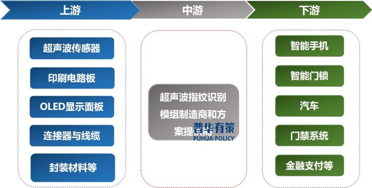 超声波指纹识别产业链上游包括超声波传感器、压电材料、印刷电路板等零部件供