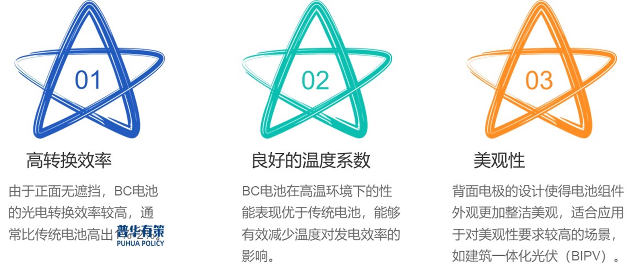 BC电池,即背接触电池,是一种将电池的正负极均置于电池背面的结构。这种设计使得电池正面无遮挡,能够最大限度地吸收太阳光,从而提高光电转换效率。此外,BC电池还具有以下多重优势: