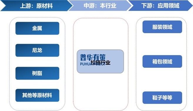 拉链行业产业链的上游主要是金属、尼龙、树脂等原材料行业,原材料主要包括锌合金