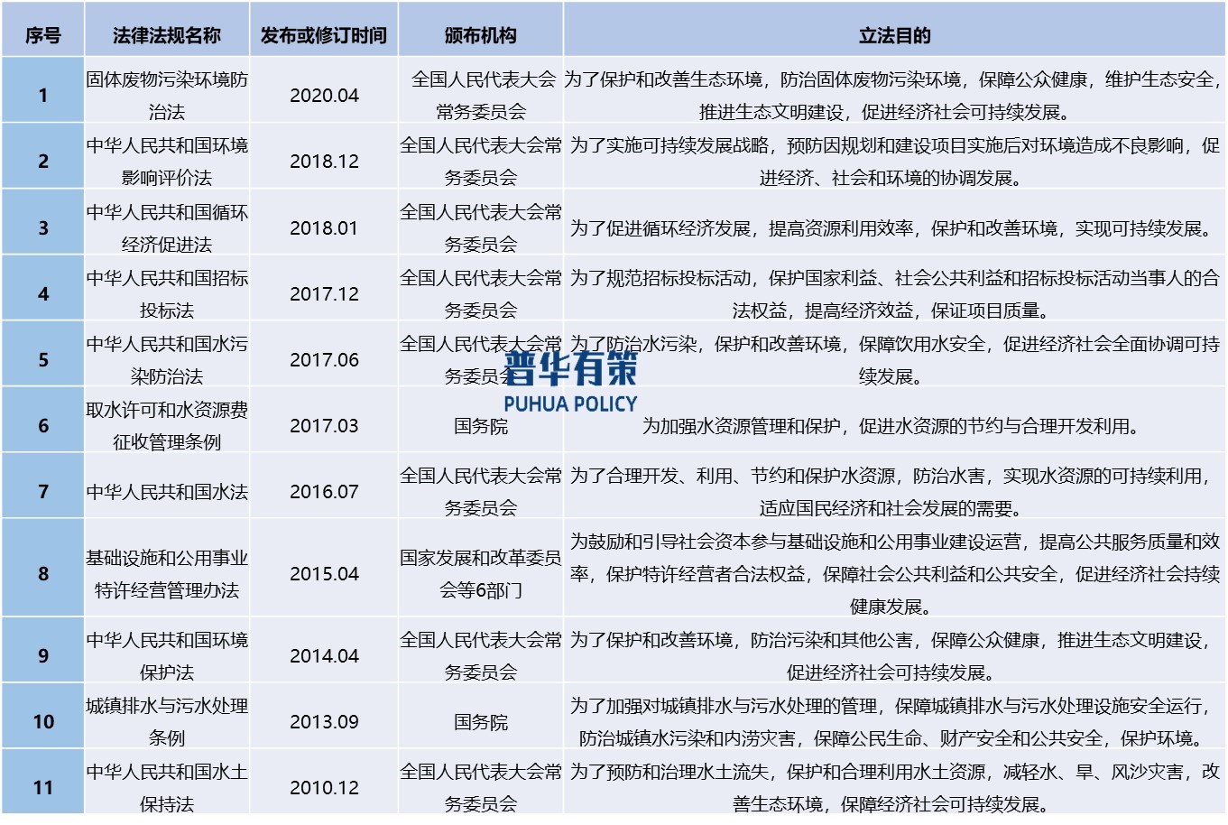 我国水务行业的监管机构主要包括中央和地方的发改委、建设、环保、物价管理、水利、卫生及质量监督部门等。中央政府制定全国性法律法规,地方政府依据本地情况制定相关法规,并对水务公司进行具体监管,涉及项目审批、产品质量、水价、安全、环境保护、资金安排等方面。中国城镇供水排水协会是全国性、行业性、非营利性社团组织,主要负责行业自律、服务和交流,接受住建部、民政部的业务指导和监督。