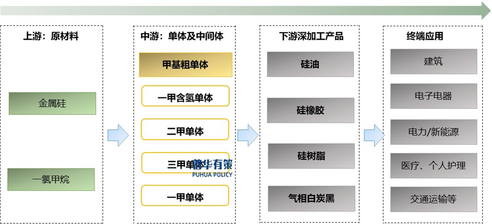 有机硅行业产业链涵盖多个紧密相连的环节,上游主要原材料有金属硅(由硅矿石冶炼而成)和一氯甲烷(通常由甲醇与氯化氢反应制