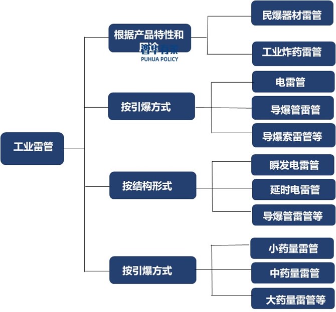 根据产品特性和用途,工业雷管行业可以细分为民爆器材雷管和工业炸药雷管两大类。工业雷管行业的分类还包括按引爆方式、结构形式药量等多个维度。按引爆方式可分为电雷管、导爆管雷管、导爆索雷管等:按结构形式可分为瞬发电雷