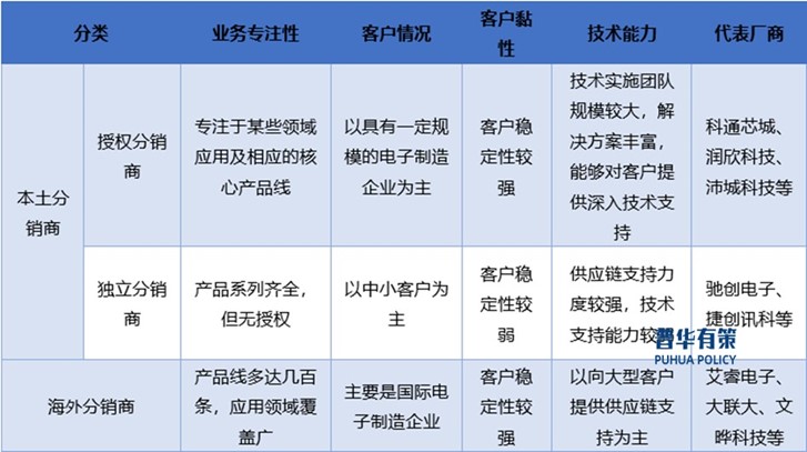 电子元器件产业链主要由上游的原厂、中游的电子元器件分销商及下游电子产品制造商三个环节构成。在电子元器件领域里,不足整体电子产品制造商总数1%的大型客户主要直接向原厂采购,采购金额为总体市场份额的44%左右,而其余99%以上的制造商主要通过分销商渠道采购,采购金额为总体市场份额的56%左右。在电子元器件上游原厂与下游需求方之间存在一个规模巨大的流通市场,分销商在其中发挥了重要作用。全球分销商体系依据业务专注性及技术能力水平形成各