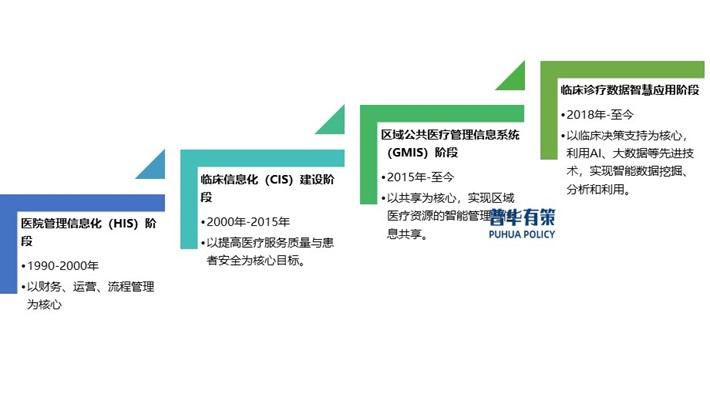我国医疗信息化建设起步于上世纪90年代,经过数十年发展,建设重点历经医疗机构内部管理到关注患者诊疗,再到区域性信息互通等多个阶段,实现从个体到整体、从局部到广域发展,内涵与功能得到强化,服务范围不断衍生。
