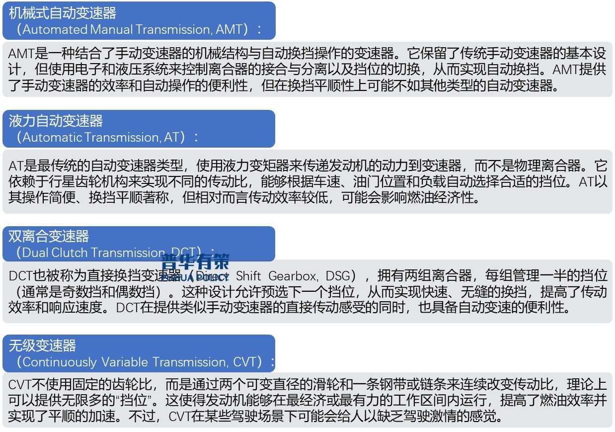(1)根据操作方式的差异,汽车变速器可分为手动变速器和自动变速器两大类;