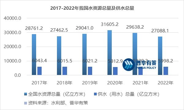 我国水资源总量位于世界前列,但人均水资源量较低。根据水利部发布的《2022年中国水资源公报》显示,截至2022年,全国水资源总量为27088.1亿立方米,2022年全国供水总量和用水总量均为599