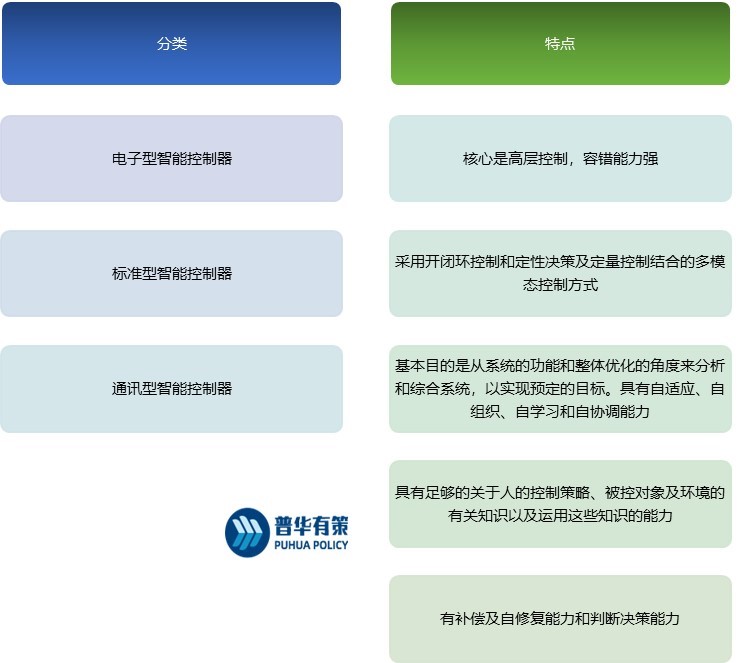 智能控制器是内置于智能设备中的一种计算机控制单元,其通过接口获取设备工作状态、命令执行结果以及环境数据等信息,执行内部控制程序,输出控制信号来控制设备,实现对被控设备的自动化控制。电子智能控制器行业与电子信息产业密切相关,其上游行业主要为芯片、显示器件、半导体器件、继电器和PCB板等,下游行业主要为家用电器、电动工具、健康与护理、汽车电子、智能建筑与家居和工业设备产品等。智能控制器行业的分类与特点如下: