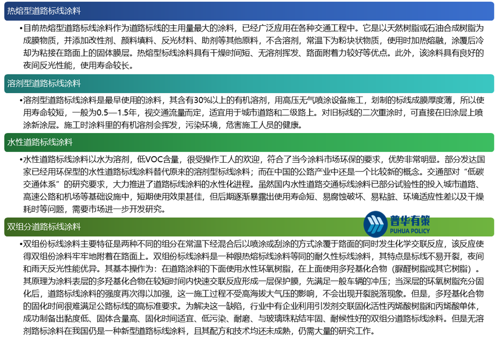 随着我国经济的快速增长,在道路事业和车辆产业取得突飞猛进的同时,道路交通标线在引导、管制和警告交通参与者中的作用日益显著。在众多的道路标线材料中,涂料由于其易涂覆于道路表面和能以薄膜的形式牢固地附着在路面等优势,被视为最具潜力的路面标线材料。美国俄亥俄州于1924年首次将涂料应用于道路交通标线来规范交通秩序。随后道路交通标线涂料在种类、性能和施工工艺等方面取得了质的飞跃。据统计,每年各种标线涂料的使用量150,000吨左右,这