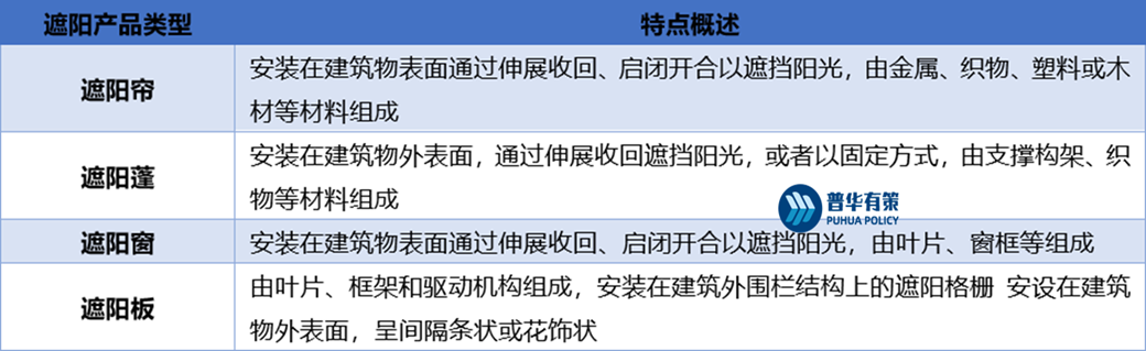 建筑遮阳产品是指安装在建筑物上,用以遮挡或调节进入室内太阳光的装置,通常由遮阳材料、支撑构件、调节机构等组成。建筑遮阳的关键应用位置在于建筑窗洞,建筑窗洞是建筑自然采光的唯一通路,也是冬季建筑直接获得太阳辐射热能的主要途径,同时也是夏季建筑空调负荷大小的重要因素,因此建筑遮阳产品的应用在室内环境的控制中具有非常重要的地位,除具有节能保温、遮阳遮光的用途外,还兼备防雨、防虫、防寒、防潮、防风沙以及隔音降噪等作用。目前,建筑遮阳