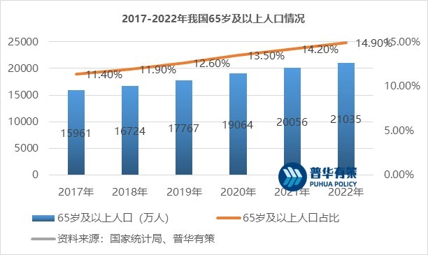 截止2022年我国65岁及以上人口达21035万人,占整个人口的14.90%。社会经济的快速发展、人均寿命的延长和出生率的下降,使得老龄人口迅速增加,带来巨大的医疗卫生需求。第七次全国人口普查显示,我国的新生儿在逐年减少,主要原因是生育人口减少,生育意愿减弱,导致老年人口比例持续增长。老龄人口作