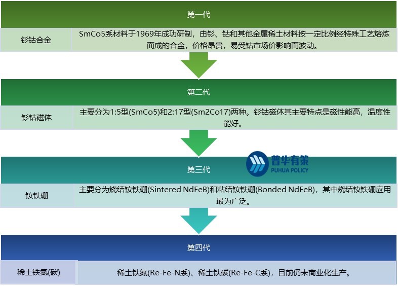 永磁元件又称硬磁元件,是一种磁化后去掉外磁场,能长期保留磁性,能经受一定强度的外加磁场干扰的重要基础功能元件,具有宽磁滞回线、高矫顽力和高剩磁的特点,能够实现电信号转换、能量传递等重要功能。稀土永磁元件是指以稀土金属元素与过渡族金属所形成的金属间化合物为基础的永磁元件,是最大磁能积最高的一类永磁元件,至今已发展到第四代。