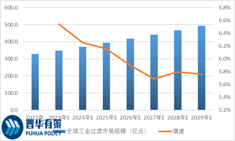 2029年市场规模将达493.3亿美元,2022-2028 年行业复合增长率达到 6.01%,工业过滤行业仍处于成长期,发展前景广阔。