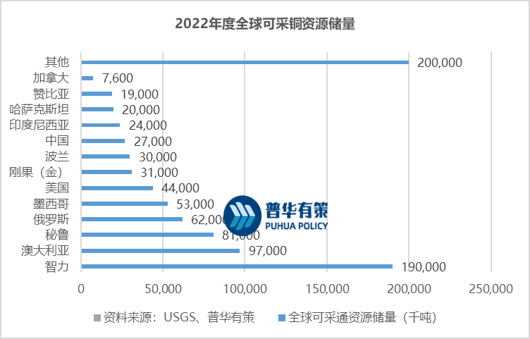 3.03%。根据美国地质调查局(USGS)统计,预计 2022 年度全球可采铜资源储量为 8.9 亿吨,具体如下: