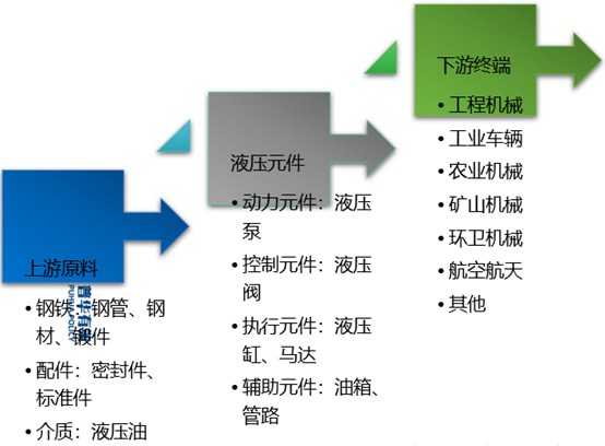 液压阀处于产业链中游,上游产业主要为钢铁铸件、配件;中游主要为液压泵、液压阀、液压油缸和液压马达等液压元件;下游产业主要为工业车辆、工程机械、矿山机械、农业机械、环卫机械等领域。从全球行业竞争格局来看,国际液压行业市场集中度较高。液压行业属于技术导向型产业,德、美、日作为传统的制造业强国,拥有一批液压企业。德国博世力士乐、美国派克汉尼汾、美国伊顿、日本川崎重工是全球液压行业龙头企业几乎占据全球近半数市场份额。